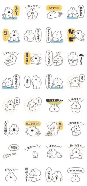 「知りたがりうさちゃん」をリメイクしたスタンプです。ナポリ より発売