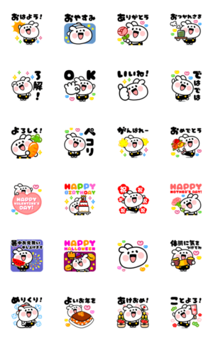 ウサギのムサシの年中使える可愛い動くスタンプ。毎日使える挨拶と返事、バレンタイン、母の日、誕生日、暑中お見舞い、ハロウィン、年末年始の挨拶まで!