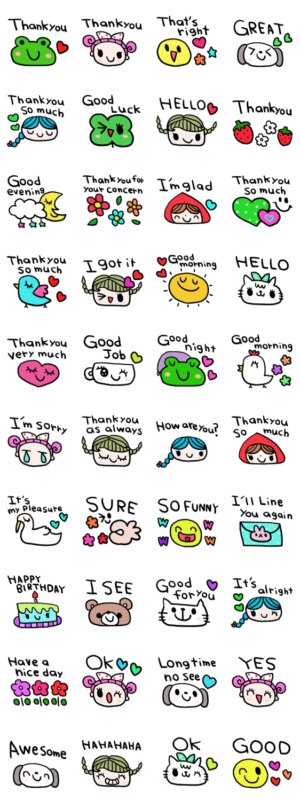 nenerinシンプル日常会話スタンプ725英語 スタンプ画像一覧