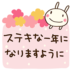 どちウサ。お祝い編。「バンザーイ」「お誕生日おめでとうございます」から「お幸せに」まで。おめでたい時に使えるお祝い言葉がいっぱい。家族、学校、お仕事でも。