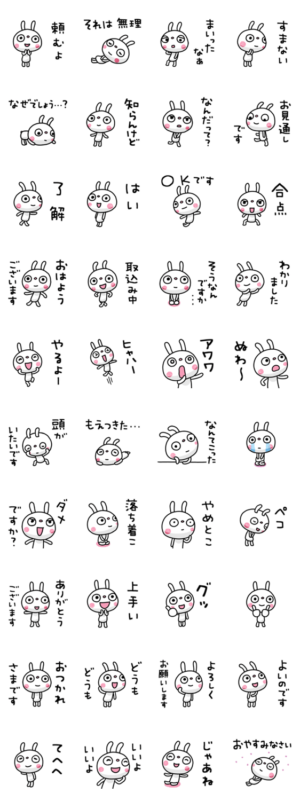 ふんわかウサギのポップタッチ風。第16弾。「てへへ」「すまない」から「取込み中」まで。ユニークなメッセージで日常生活を楽しもう。家族、学校、お仕事でも。