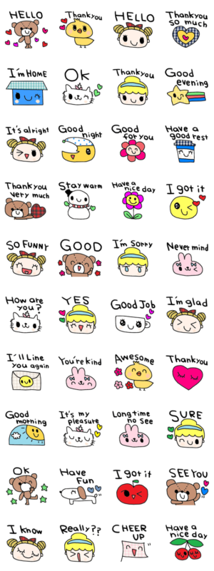 シンプルな日常会話スタンプです。英語スタンプnenerin より発売