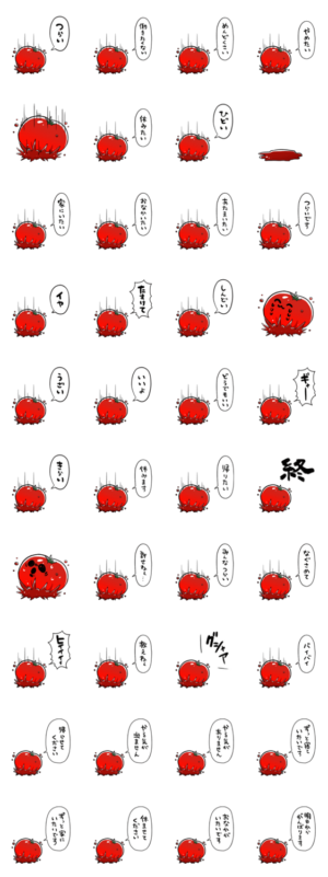 つぶれたフレッシュトマトのスタンプです。つらい時、疲れた時とか休みたい時や帰りたいとき、文句のある時とか愚痴を言いたい時とか煽られた時や煽りやケンカ用にどうぞ。オカヤマ より発売
