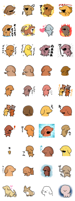 様々な表情をした犬たちのスタンプです。うかうか より発売