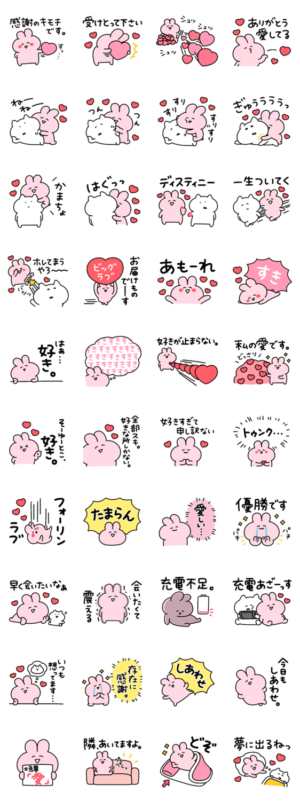 ゆるゆる~なうさぎさんスタンプ、第7弾♡好きが溢れる♡愛情たっぷり♡愛が重いセットです♡(片想い/メンヘラ/カップル)umi工房 より発売
