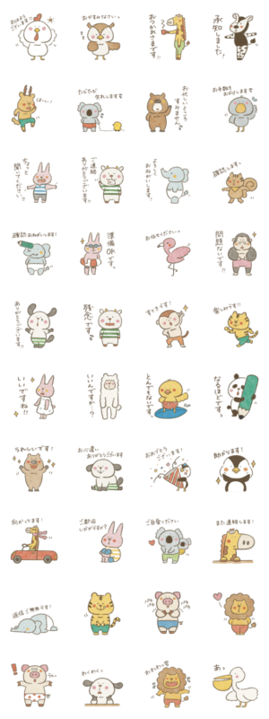 ゆる〜い動物たちの敬語スタンプです。ジャブノオウチ より発売