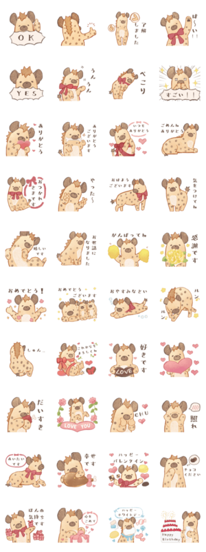 ハイエナさんの日常 バレンタインやお誕生日、気持ちを伝えるスタンプですtoriten より発売