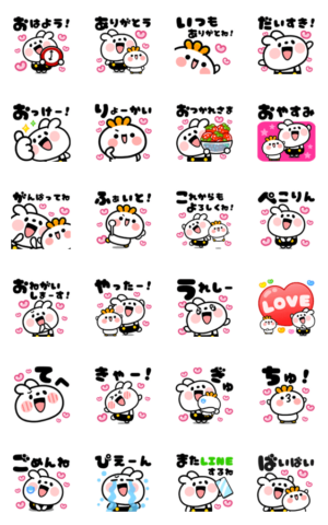 飛び出す♪ウサギくんとトリさんのラブラブ スタンプ画像一覧