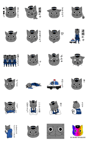 少し毒舌な猫のおまわりさんのスタンプです。sakiyama より発売