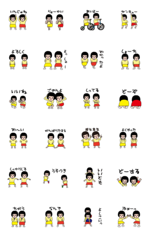 動きの面白いかわいい双子の女の子のスタンプ。hitta より発売