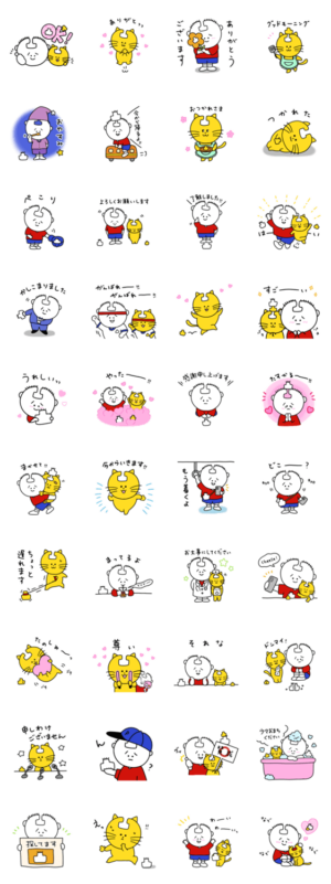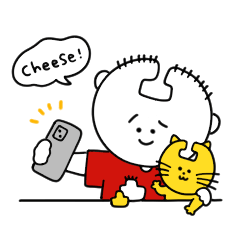 なぜかおでこがとれちゃった、おでこ取れちゃったくん&おでこ取れちゃったネコくんのスタンプ。毎日のトークで使う言葉が盛りだくさん!