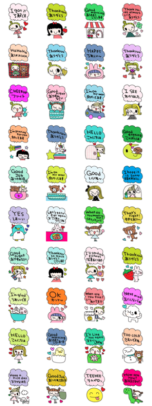 日本語英語韓国語タイ語中国語ございます。 ※このスタンプはトークルームで大きく表示されるBIGスタンプです。nenerin より発売