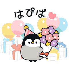 誕生日や記念日などのお祝いに!やさしく気づかいのできるペンギンの赤ちゃんたちのかわいいアニメーションスタンプです♪