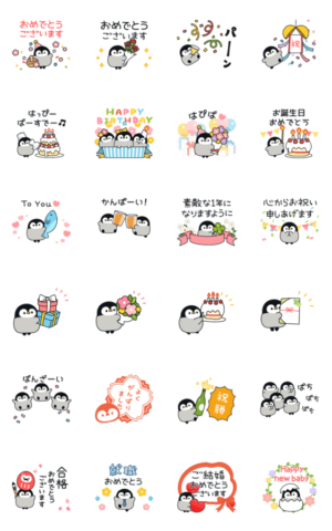 うごく♪心くばりペンギン(お祝いセット) スタンプ情報