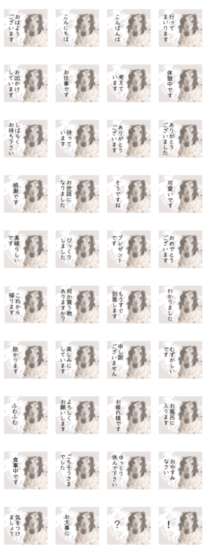 ポリゴンで描いたボルゾイのスタンプです。毎日使える・敬語・シック・大人可愛いA より発売