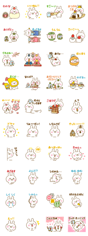 Naoyのゆる~くかわいい春の気持ちのよい新学期、新学年、新年度にに使えるうさひなとぺんぺんのカスタムスタンプだよ(*‘ω‘ *)6文字まで自由に名前をかえれるよ♪Naoy より発売