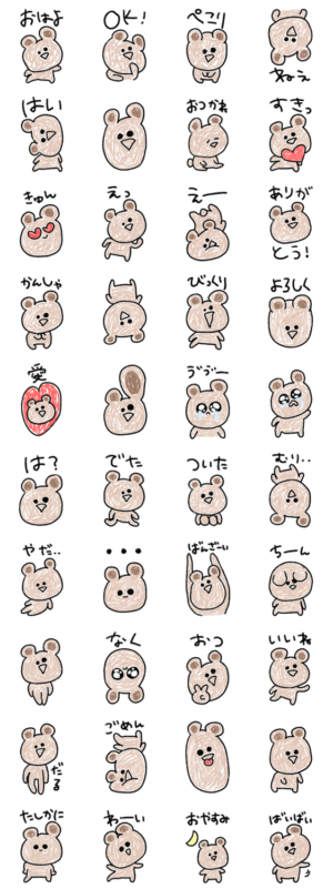 子供の落書き風。シュールなミニくま スタンプ画像一覧
