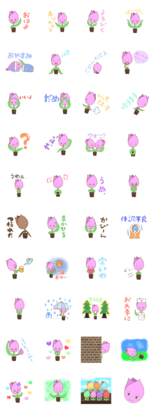 ある日、花束のプレゼントでおうちにきたチューリップです。ちょっと生意気な顔したかわいい子です。花だけど人間と同じ感情を持っているみたいです。R1NP1 より発売