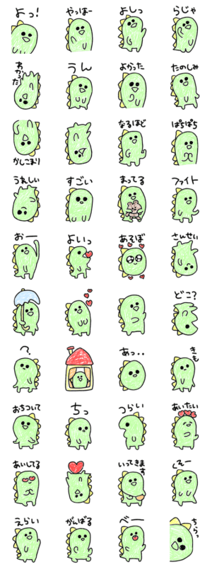 子供の落書き風②シュールなミニ恐竜です。 ※このスタンプはトークルームで大きく表示されるBIGスタンプです。eribo より発売
