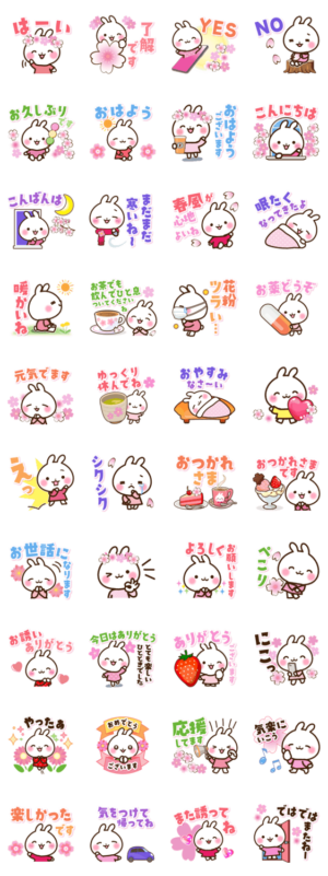 春に向けて使えるスタンプです♪基本の日常の挨拶や相手を気遣う言葉がたくさん入っています。桜/お花見/敬語/応援/気遣い/丁寧/可愛いマキたん より発売