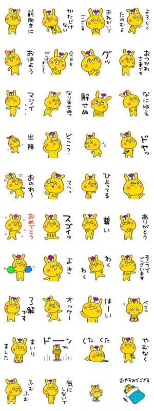 ちょんまげが凛々しい、うさぎサムライ第2弾。「ひよってる」「なりませぬ」から「かたじけない」まで。毎日のメッセージを力強く届けよう。家族、学校、お仕事でもMami / エストループ より発売