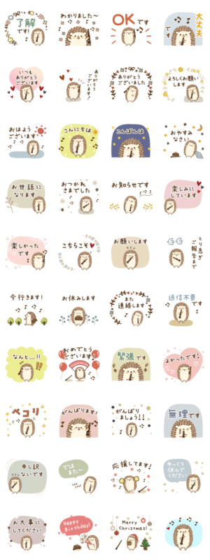 クラリネット*可愛いハリネズミ使える敬語 スタンプ画像一覧