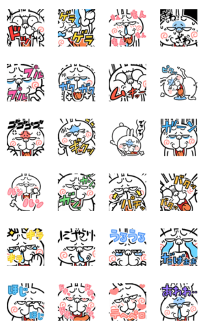 今回の煽りうさぎは【漫画風】オノマトペ!!擬音とリアクションのみなのでとても使いやすいおふざけスタンプになってます☆ともだち/家族/面白い/ネタ/うさぎ/煽り/アニメ