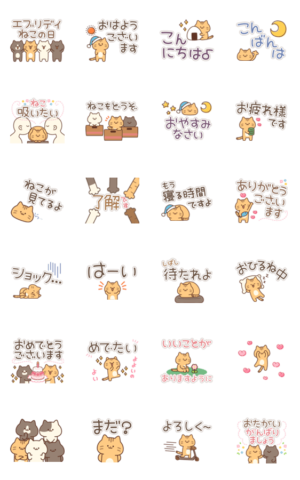 茶トラ、時々ハチワレ、黒猫、白猫…のネコの日に使えないこともない大きめ文字のシンプルな飛び出して動くスタンプです!DECOR より発売