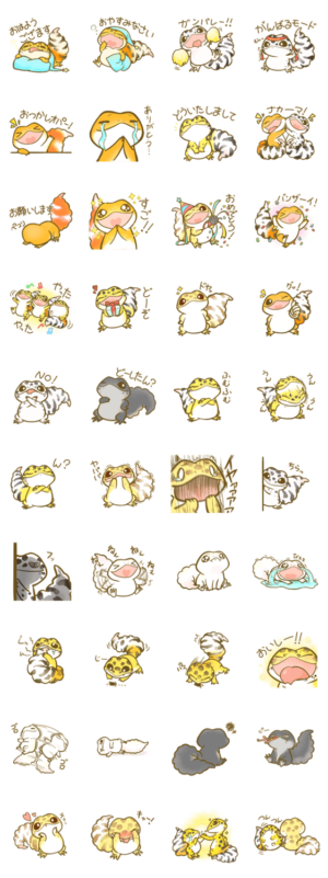 爬虫類レオパードゲッコー(ヒョウモントカゲモドキ)が沢山の可愛いスタンプが出来ました!表情豊かなレオパ達に癒されながら楽しく会話出来ます!