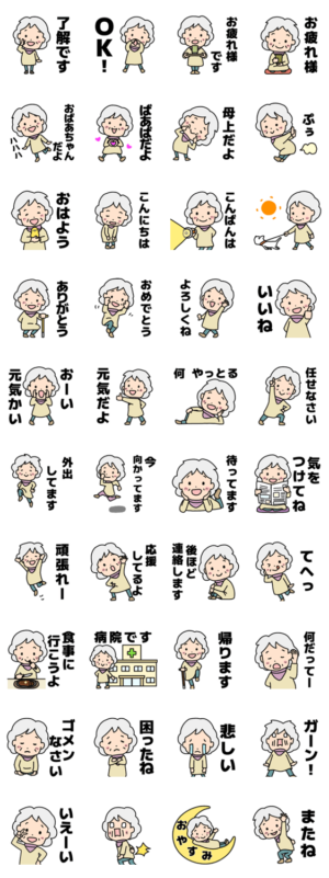 ▶ 「おばあちゃんでか文字」の無料スタンプを検索