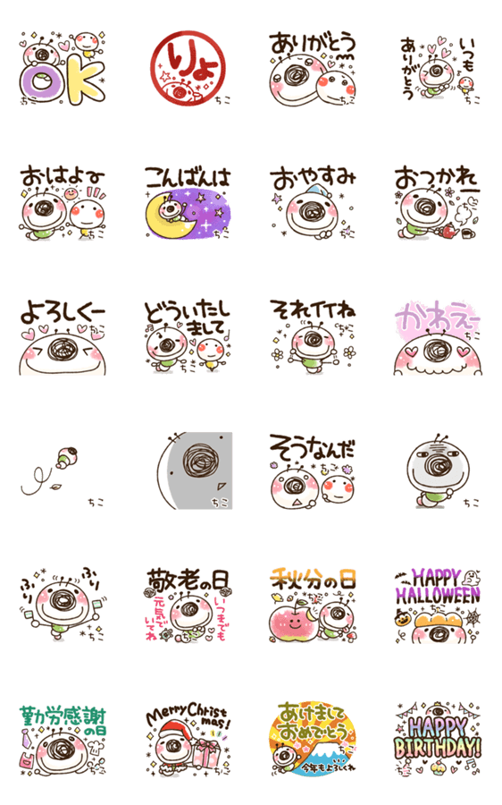 ちこ/チコ専用96いもぽん。年中使える/日常/敬老の日/春分の日/ハロウィン/勤労感謝の日/クリスマス/正月/お正月/誕生日/デカ文字/動く/山田まぽん作