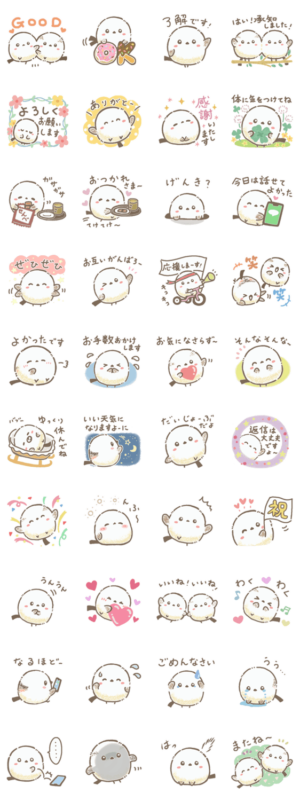 かわいい小鳥 野鳥のエナガさんとシマエナガさんの使いやすい日常会話スタンプです。/白いことり/便利/毎日使える/ほんわか