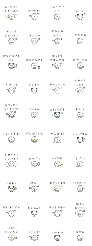 小さい動物のスタンプ。敬語もゆるい表現もあります。 どうぶつ/アニマル/犬/いぬ/イヌ/うさぎ/ウサギ/ねこ/ネコ/パンダ/くま/クマ/ハート/かわいい/色鉛筆/いろえんぴつbearbear より発売