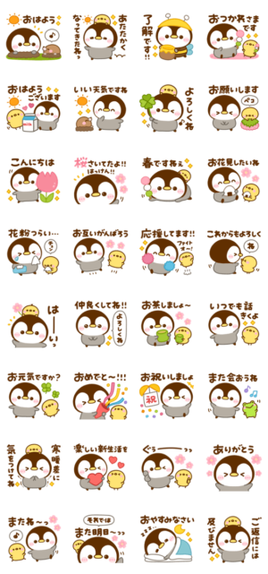 小さなペンギンの赤ちゃんぺんぺんの春に可愛い♪ほんわかスタンプできました♡日常の気遣いから花粉症、新生活に使えるものまで色々入ってます。ぴよたぬき♡ より発売