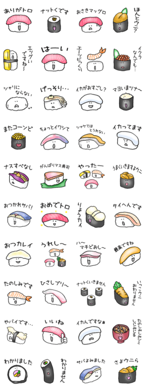 美味しいお寿司のスタンプの2貫目です。おすしが好きな方。楽しい会話にそっとスシを添えてください。Brody Machine より発売