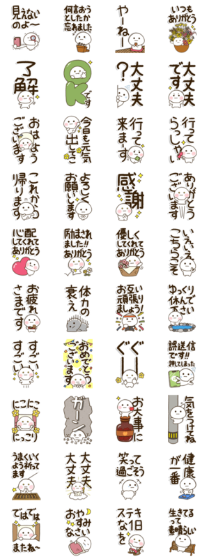 老眼の方や小さい字が苦手な方に送っても読みやすい大きい文字のスタンプです。シニア世代にも嬉しい毎日使えるワードを揃えました!byだいふくまる