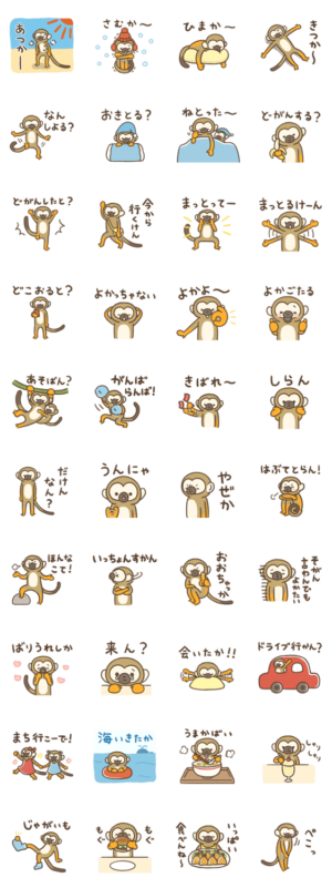長崎弁であちこち散歩しよるサルのスタンプばい♪ 日常会話でも使えるばい♪hokumin より発売