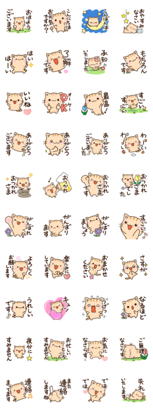 とらねこの『ちびトラ』の、絵文字と着せかえもあります。シンプルで花等が多めの、基本的な言葉の虎猫スタンプ。よく使うあいさつ等もあるネコスタンプです。【かたこ】かたこ より発売