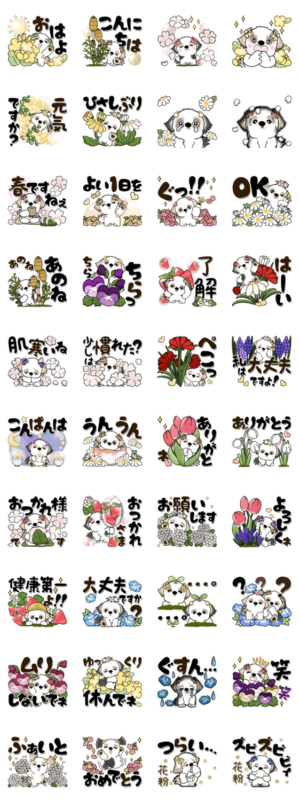 シーズー犬の春の花と一緒のスタンプです。老眼にも優しい大きめ文字です。藤花 より発売