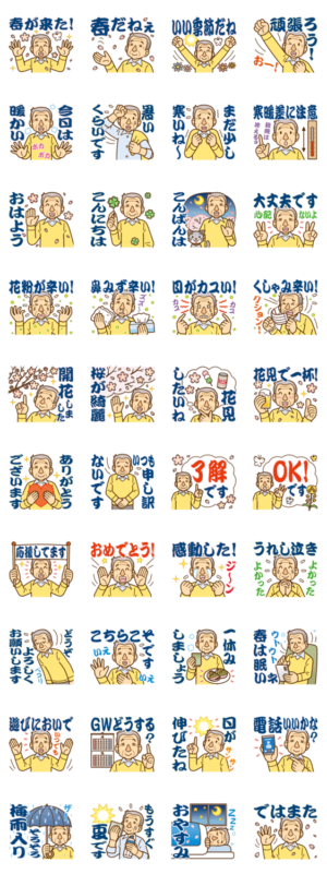 春を楽しむおじいちゃんの日常挨拶です。鈴木ほたる より発売