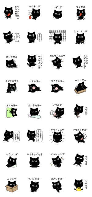 28個目です。ネコ好き集まれ!クロネコだよ!ぼく黒猫だよ!トーク画面の背景黒だと見づらくなるよ!気をつけてね!type-E より発売