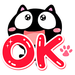 黒猫【くろちー】のかわいく元気な大字スタンプ。よく使う言葉や、あいさつ等、カラフルで選びやすいネコスタンプ。クロねこ好きな方に、絵文字と合わせてぜひ。【かたこ】