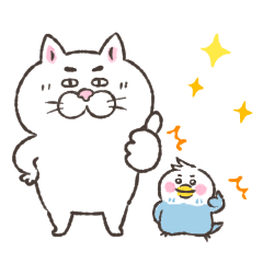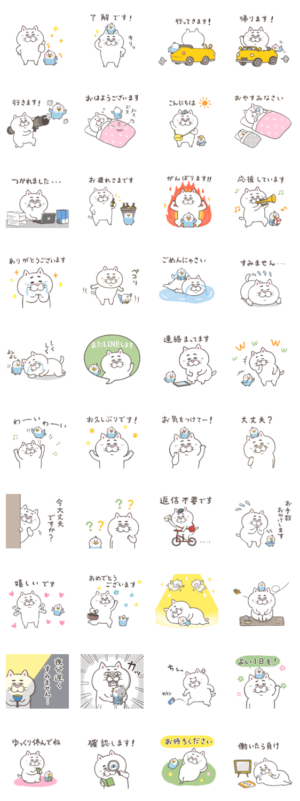 敬語で使いやすい!眉毛が愛らしい猫とインコの種族を超えた友情のスタンプです♪いけやけい より発売