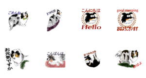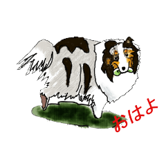 漫画「あっちゃんとリカの日誌」のスタンプ。シェルティー犬が挨拶します諏訪緑 より発売