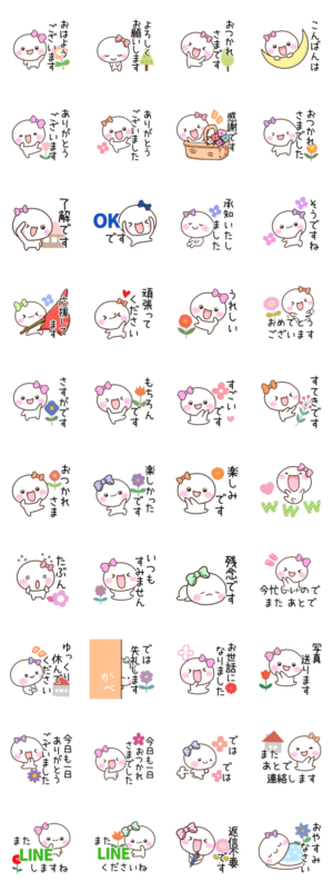 『しろりぼん』の『絵文字』と『着せかえ』もあります!リボンを付けた可愛い『しろりぼん』のていねいな言葉のスタンプ。誰でも使える、かわいいスタンプです。【かたこ】かたこ より発売