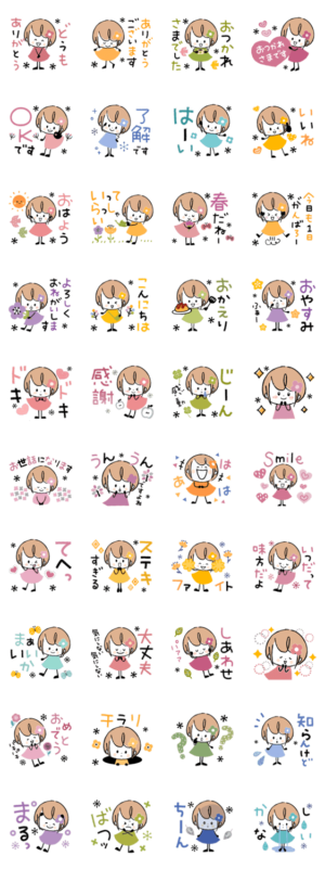 しあわせあいさついっぱいのminiガーリースタンプです。誰でも使いやすいシンプルなスタンプに北欧テイストをプラスした可愛いスタンプです。