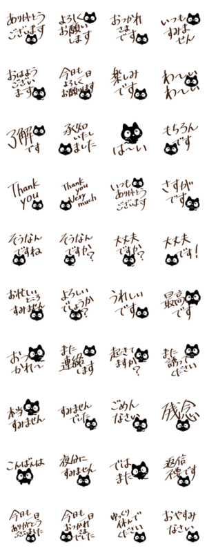 『クロネコすたんぷ』の手書きで気軽に送れるメッセージ黒猫スタンプ。絵文字と着せかえもあります!文字が大きくて、可愛い、くろねこスタンプです。【かたこ】かたこ より発売