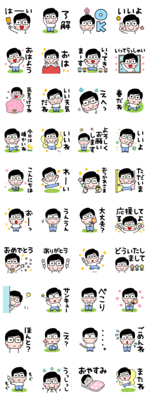 かわいいお父さんの春に使えるスタンプです。satomi より発売