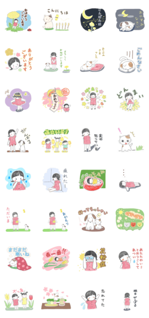 布人形のえっちゃんと仲間たち、春らんまん、ゆるい感じのスタンプすぐり堂 より発売