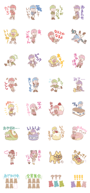 TVアニメ「おそ松さん」から『ラテ』デザインが登場!6つ子達がラテカラーのおしゃれで可愛いファッションのスタンプです♪ぴえろクリエイターズ より発売